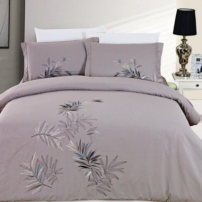 55523D8 Size King Features -Material Cotton-200 Threadcount-Elegant embroidered leaves in black cream and a touch of turquoise float elegantly on a taupe background-Coordinates with bone sheets black sheets and fusion aqua taffeta accessories Includes -Set includes duvet cover and shams